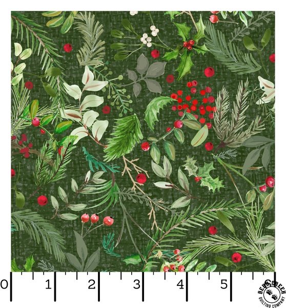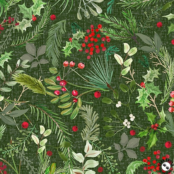 Bring the beauty of nature indoors this holiday season with Winter Wreaths  from Maywood Studio.  Brimming with twigs, sprigs, and berries, this collection offers everything you need for festive projects, printed on soft natural creams, rustic reds, and muted greens.  The running yardage features blocks of unique wreath designs — perfect as quilt cornerstones, block centers, or charming focal points in your seasonal creations.