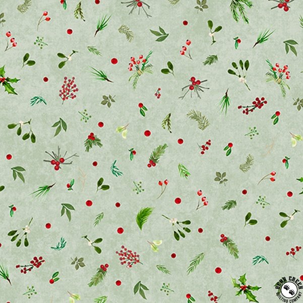 Bring the beauty of nature indoors this holiday season with Winter Wreaths  from Maywood Studio.  Brimming with twigs, sprigs, and berries, this collection offers everything you need for festive projects, printed on soft natural creams, rustic reds, and muted greens.  The running yardage features blocks of unique wreath designs — perfect as quilt cornerstones, block centers, or charming focal points in your seasonal creations.