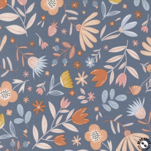 Blossoms and Blooms  fabric collection started with a simple sight: the vintage watering can on my desk, now a home for my artistic tools – pencils, pens, brushes, markers, and colored pencils.  These sparked memories of my childhood crafting experiments. I vividly remember flipping through a craft book filled with exciting projects like beading bracelets, cross-stitching, and embroidery - I tried them all!  One of my favorite projects was arranging flower compositions.  During summer time, I'd gather wildflowers, seeking out unique shapes and colors, and arrange them in anything from old cups to kitchen pots and old watering cans.  This fabric collection brings back those fun memories of summer days, filled with creativity and joy!