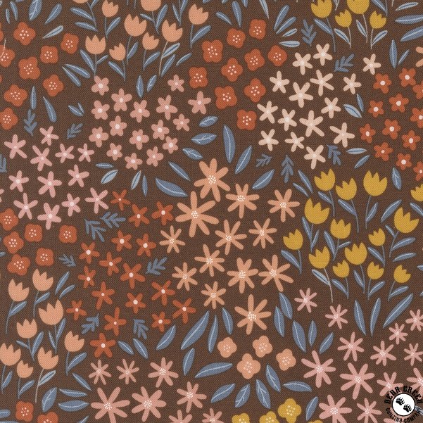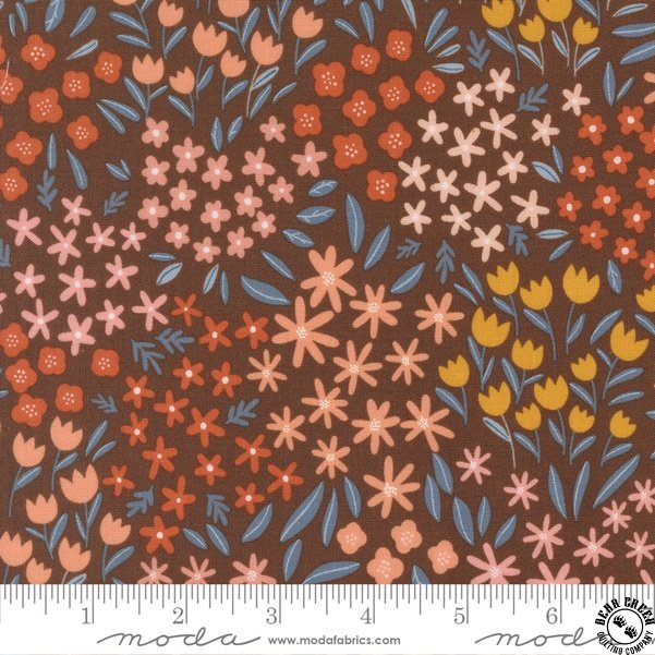 Moda Blossoms and Blooms Small Flowers Chocolate