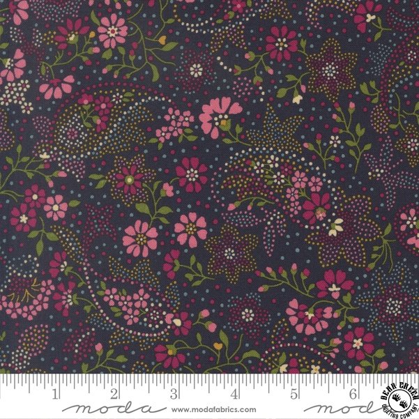 showcases traditional motifs with a modern sensibility.  Ornate florals, graceful vines, and delicate damasks unfold in a sophisticated color palette of rich jewel tones fresh picked right from a vibrant English garden.