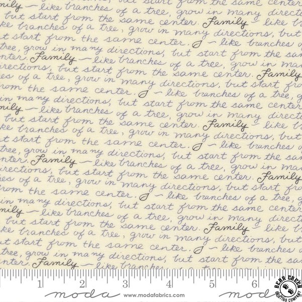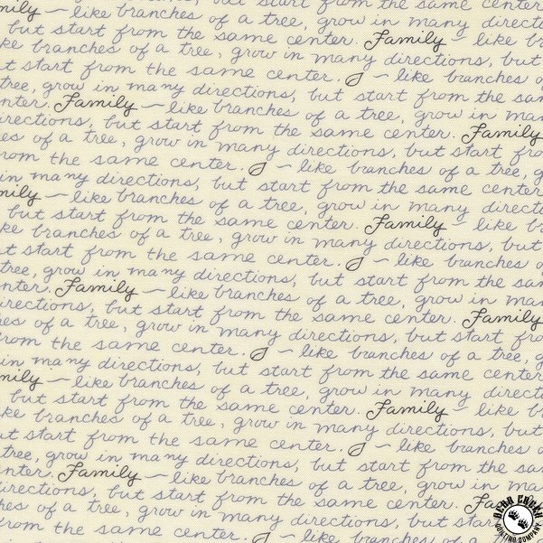 My husband, Scott, and I love to travel to shops and quilt guilds around the country and share my design process. We have done over 100 of these presentations and trunk shows! Over the years, one fabric collection is always asked about from the past…my Family Tree collection! Even though it is from MANY years ago, quilters always want to know if it is still available. So, we have decided to do a new version of this beloved favorite! The panel provides a blank “Family Tree” to fill with birds (also provided) that can be personalized with names of those you love. I’ve painted this new version in muted watercolors, giving a softer, more updated feel to the entire collection. What a better way to create a family heirloom than creating a quilt, wall-hanging, or table runner about your family? After all, families, like quilts, truly are forever!