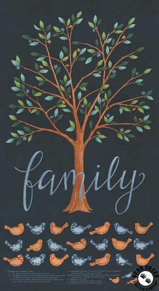 My husband, Scott, and I love to travel to shops and quilt guilds around the country and share my design process. We have done over 100 of these presentations and trunk shows! Over the years, one fabric collection is always asked about from the past…my Family Tree collection! Even though it is from MANY years ago, quilters always want to know if it is still available. So, we have decided to do a new version of this beloved favorite! The panel provides a blank “Family Tree” to fill with birds (also provided) that can be personalized with names of those you love. I’ve painted this new version in muted watercolors, giving a softer, more updated feel to the entire collection. What a better way to create a family heirloom than creating a quilt, wall-hanging, or table runner about your family? After all, families, like quilts, truly are forever!