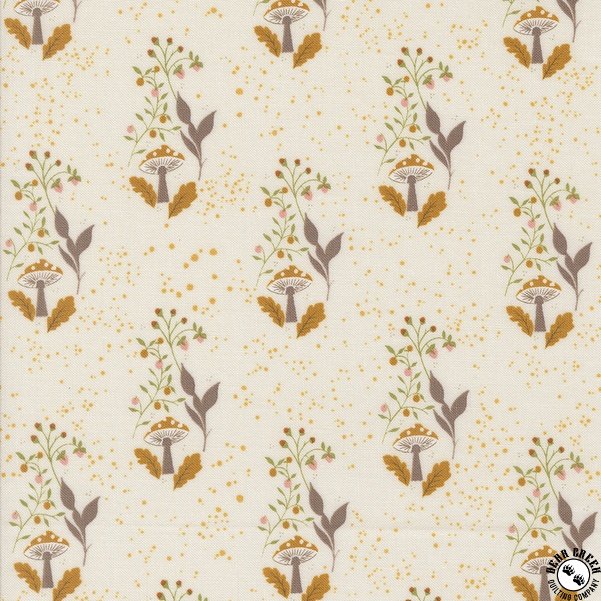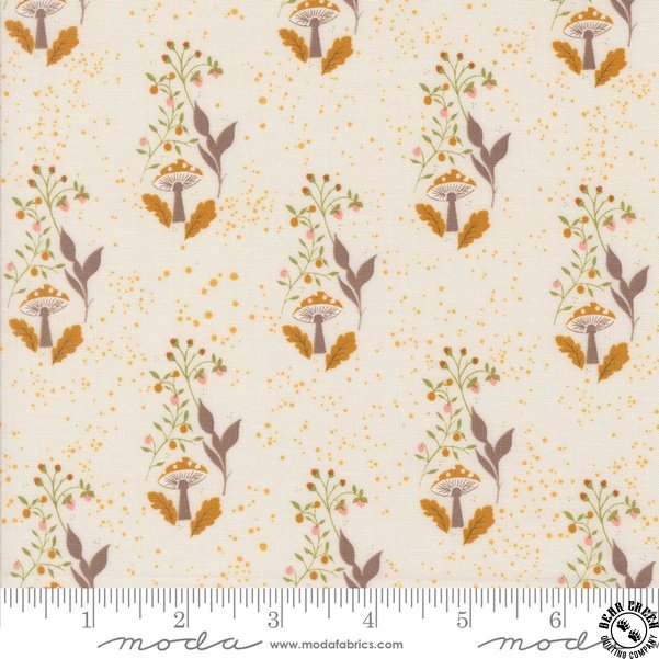 Frivolity  by Sweetfire Road for Moda is a whimsical celebration of nature’s quiet magic.  A gorgeous palette of peach, fern, marigold, and spicy red dances across a rich cream background, bringing to life lush ferns, wild dahlias, and tiny mushrooms.  Inspired by the idea of a woodland tea party, this fanciful collection invites you to sip chamomile and spot a curious critter (or two) tucked sweetly within the prints.  Frivolity  features versatile patterns drawn from the wild beauty of the forest, along with a charming set of panels perfect for pillows, quilts, and more.  Let the rich, enchanting color palette spark your creativity — and for an especially romantic pairing, mix and match with prints from my popular Evermore  collection.