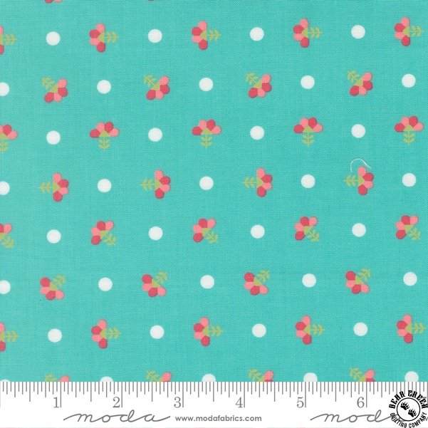 In the Garden  fabric collection features a rainbow of the warm colors that I so enjoy sewing with… pinks, corals, yellows, greens, and aquas.  Ever since my first collection, I have also enjoyed how nicely a warm gray plays with all of those sherbet brights.  You will find my beautiful signature grays in this collection.  Over the years, I have often joked that I can’t grow a beautiful flower garden outside (this girl does not have a green thumb!) but I can create flower-filled fabrics!  In the Garden is bursting with flowers; wildflowers, daisies, blossoms, and buds are spread throughout.