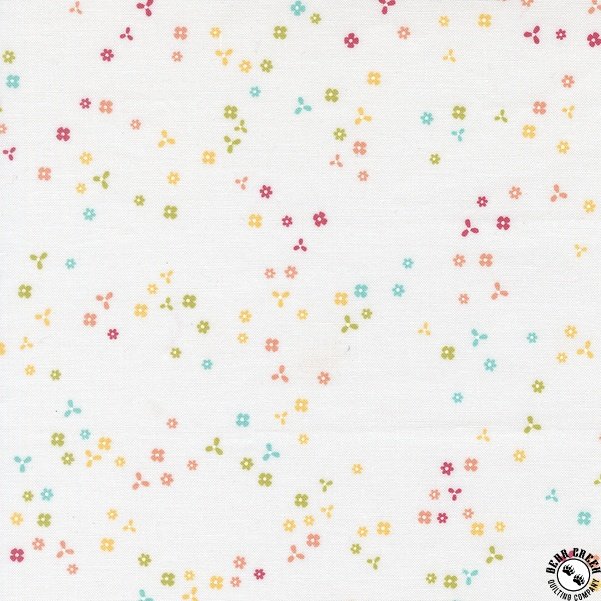 A beautiful new, sketchy floral is sure to become a favorite for backgrounds.  Speaking of backgrounds, there are some wonderful low volume options in this collection that are quite lovely!  You will also find sweet, geometric prints to round out the collection, including stripes for those bindings (my favorite way to finish a quilt).  I can’t wait to see the beautiful quilt “bouquets” you create with In the Garden  fabrics.  ~Corey