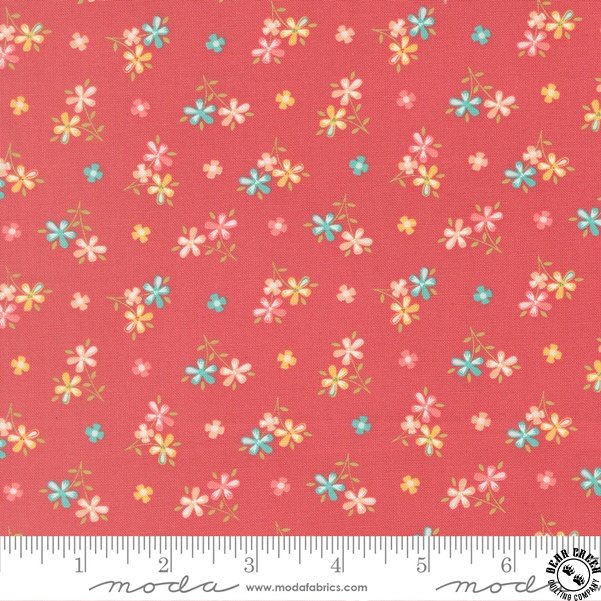 In the Garden  fabric collection features a rainbow of the warm colors that I so enjoy sewing with… pinks, corals, yellows, greens, and aquas.  Ever since my first collection, I have also enjoyed how nicely a warm gray plays with all of those sherbet brights.  You will find my beautiful signature grays in this collection.  Over the years, I have often joked that I can’t grow a beautiful flower garden outside (this girl does not have a green thumb!) but I can create flower-filled fabrics!  In the Garden is bursting with flowers; wildflowers, daisies, blossoms, and buds are spread throughout.