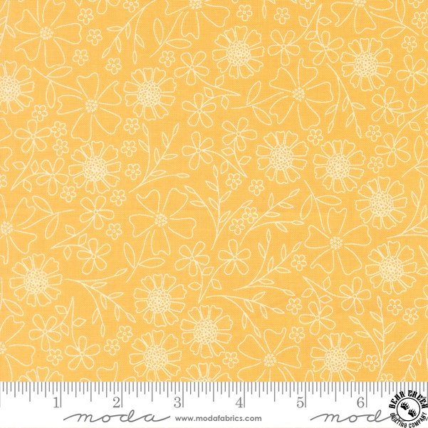In the Garden  fabric collection features a rainbow of the warm colors that I so enjoy sewing with… pinks, corals, yellows, greens, and aquas.  Ever since my first collection, I have also enjoyed how nicely a warm gray plays with all of those sherbet brights.  You will find my beautiful signature grays in this collection.  Over the years, I have often joked that I can’t grow a beautiful flower garden outside (this girl does not have a green thumb!) but I can create flower-filled fabrics!  In the Garden is bursting with flowers; wildflowers, daisies, blossoms, and buds are spread throughout.