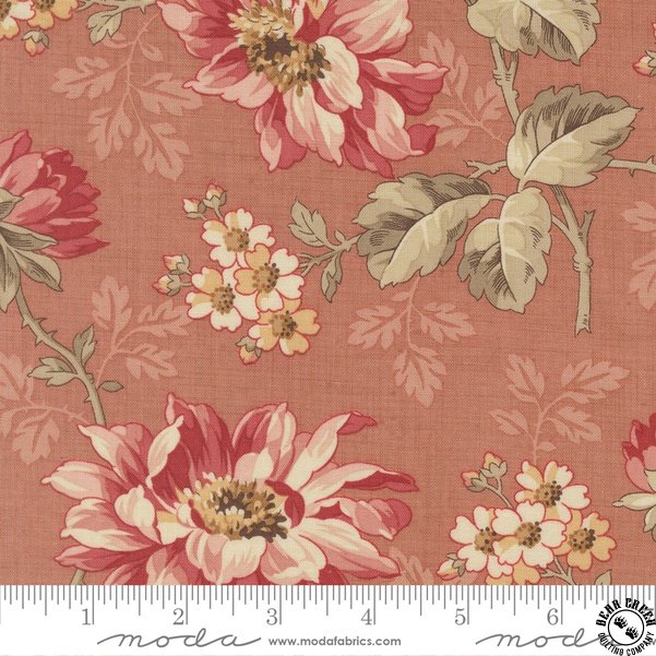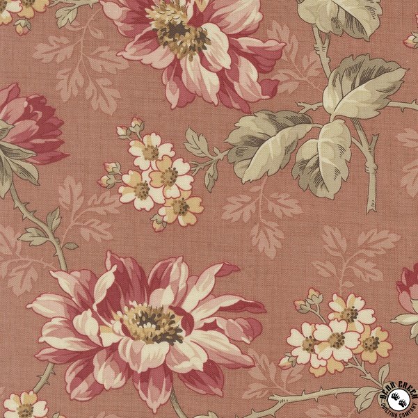 is a soft, romantic interpretation of early 19th-century French prints, evoking the charm of an old French parlor or a lady’s dressing room.  The larger, multicolored floral motifs are perfect for fussy cutting—ideal for creating lovely appliqués, hexagons, and other delicate designs.  Of all the collections we’ve created over the past fifteen years with Moda, this one is our absolute favorite.  It harmonizes beautifully with our previous collections, offering endless possibilities for mixing and matching.