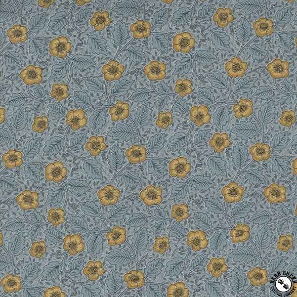 Morris Manor  from Barbara Brackman is Moda's latest update of William Morris's classic design. The collection is named for the family's summer home Kelmscott Manor, a riverside house they began renting annually in the 1870s. Morris thought Kelmscott Manor heaven on earth, a spot he captured in colors echoing the seasonal view. At the Morris Manor they boated, their girls grew up and Morris tended his gardens that provided inspiration for the floral prints. We've recolored a few of our favorites from early Morris lines in river-inspired shades of blue and green. Print collectors will be glad to know we've added some not reproduced earlier, such as the leafy Branch and the Scroll floral. These prints will inspire your Arts & Crafts decorating and patchwork projects.