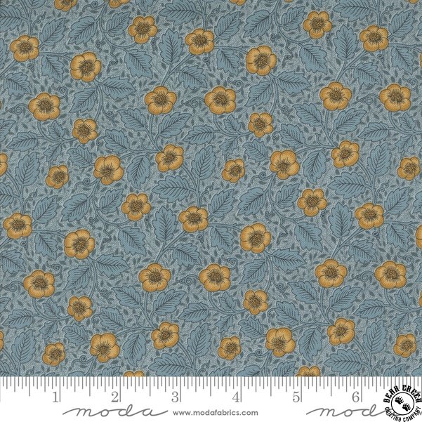 Morris Manor  from Barbara Brackman is Moda's latest update of William Morris's classic design. The collection is named for the family's summer home Kelmscott Manor, a riverside house they began renting annually in the 1870s. Morris thought Kelmscott Manor heaven on earth, a spot he captured in colors echoing the seasonal view. At the Morris Manor they boated, their girls grew up and Morris tended his gardens that provided inspiration for the floral prints. We've recolored a few of our favorites from early Morris lines in river-inspired shades of blue and green. Print collectors will be glad to know we've added some not reproduced earlier, such as the leafy Branch and the Scroll floral. These prints will inspire your Arts & Crafts decorating and patchwork projects.