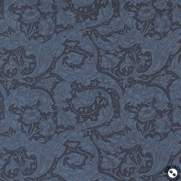 Morris Manor  from Barbara Brackman is Moda's latest update of William Morris's classic design. The collection is named for the family's summer home Kelmscott Manor, a riverside house they began renting annually in the 1870s. Morris thought Kelmscott Manor heaven on earth, a spot he captured in colors echoing the seasonal view. At the Morris Manor they boated, their girls grew up and Morris tended his gardens that provided inspiration for the floral prints. We've recolored a few of our favorites from early Morris lines in river-inspired shades of blue and green. Print collectors will be glad to know we've added some not reproduced earlier, such as the leafy Branch and the Scroll floral. These prints will inspire your Arts & Crafts decorating and patchwork projects.