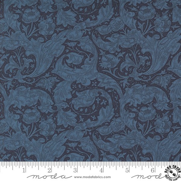 Morris Manor  from Barbara Brackman is Moda's latest update of William Morris's classic design. The collection is named for the family's summer home Kelmscott Manor, a riverside house they began renting annually in the 1870s. Morris thought Kelmscott Manor heaven on earth, a spot he captured in colors echoing the seasonal view. At the Morris Manor they boated, their girls grew up and Morris tended his gardens that provided inspiration for the floral prints. We've recolored a few of our favorites from early Morris lines in river-inspired shades of blue and green. Print collectors will be glad to know we've added some not reproduced earlier, such as the leafy Branch and the Scroll floral. These prints will inspire your Arts & Crafts decorating and patchwork projects.
