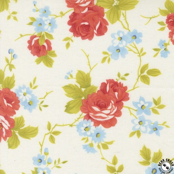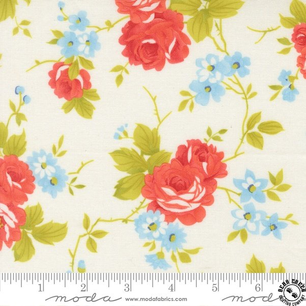 fabric collection is a heartfelt celebration of summertime in the country—homemade strawberry pie, lakeside picnics, small-town parades, and lazy afternoons spent on the porch.  Beyond its charming nostalgia, Rosie honors the fortitude, creativity, and courage of the women who came before us.  Inspired by the iconic Rosie the Riveter, a symbol of women who rolled up their sleeves and did what needed to be done, this collection is meant to inspire strength, ingenuity, and heartfelt creativity.  With a color palette drawn from Denim Jeans, Cherry Pie, and Whipped Cream, Rosie is a Fig Tree interpretation of a classic small-town summer.  We hope you’ll join us there as you dream up new quilts and projects for the ones you love.