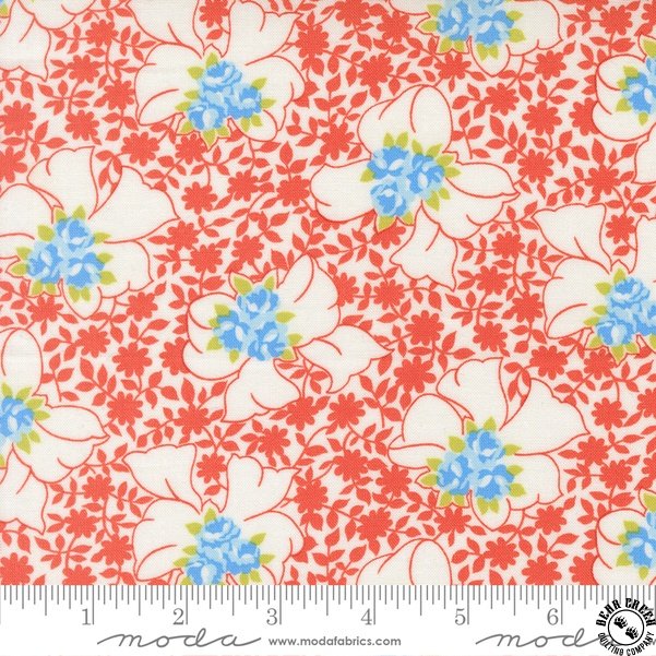 fabric collection is a heartfelt celebration of summertime in the country—homemade strawberry pie, lakeside picnics, small-town parades, and lazy afternoons spent on the porch.  Beyond its charming nostalgia, Rosie honors the fortitude, creativity, and courage of the women who came before us.  Inspired by the iconic Rosie the Riveter, a symbol of women who rolled up their sleeves and did what needed to be done, this collection is meant to inspire strength, ingenuity, and heartfelt creativity.  With a color palette drawn from Denim Jeans, Cherry Pie, and Whipped Cream, Rosie is a Fig Tree interpretation of a classic small-town summer.  We hope you’ll join us there as you dream up new quilts and projects for the ones you love.