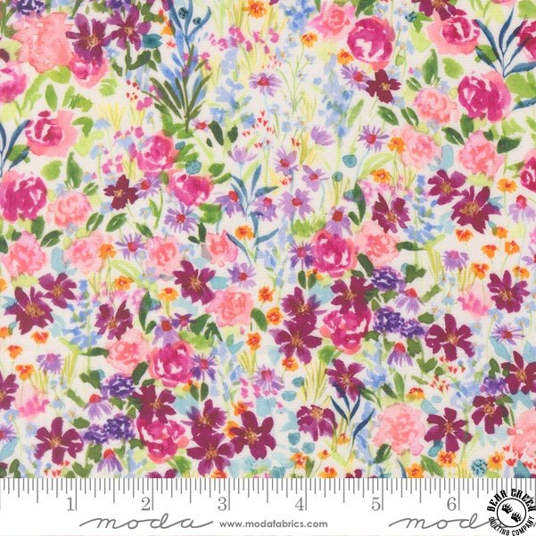 Step into the radiant beauty of Soulstice,  a fabric collection alive with the vibrant energy of summer’s most beloved blooms.  Inspired by the joy and warmth of the sunniest season, Laura Muir captures the essence of dahlias, peonies, roses, daisies, and more in a stunning symphony of bold, expressive watercolor florals.  Every brushstroke and hue in Soulstice  is infused with the spirit of summer—bright, cheerful, and alive with movement.  These fabrics celebrate the colors of long, sun-drenched days, the perfume of fresh flowers on the breeze, and the simple bliss of creating something beautiful with your own hands.  Whether you’re sewing a quilt that radiates warmth, a garment that feels like pure sunshine, or home decor that brings the outdoors in, Soulstice  is designed to spark joy and inspire creativity.  Let this collection remind you to embrace the beauty around you and find happiness in the little moments.  Soulstice — where fabric meets the golden glow of summer!  ~Laura