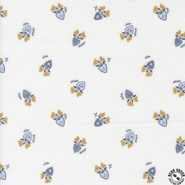 shines with the golden warmth of honey sunlight paired with the clear, bright blue of summer skies. This joyful collection feels like a breath of fresh air on a perfect summer morning, featuring a range of beautiful blenders adorned with dainty flowers, berries, and bees. The popular dot print makes a return along with a beloved bee print. Enjoy the light, embrace the joy, and happy quilting!