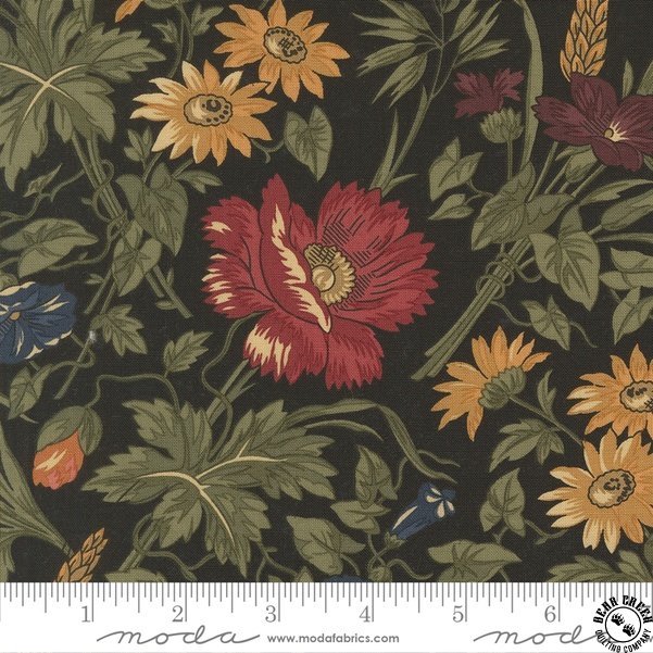 Welcome to Wheatland!  The featured fabric in this line tells the story of summers in Kansas and all across the Midwest.  When I look out my back window, the wheat stalks are gently bending in the breeze with an assortment of wildflowers scattered along the fence line.  The scene is a living painting of natures bounty.  I've added smaller prints of wheat, flowers, vines, and berries to round out this ode to summer.  A classic Kansas Troubles palette of warm reds, golds, pumpkins, purples, greens, blues, and blacks contrast with an assortment of soft tans to create a lovely collection of fabrics for your next quilting project.  Come with me to Wheatland  and surround yourself with the natural beauty of the countryside. ~Lynn