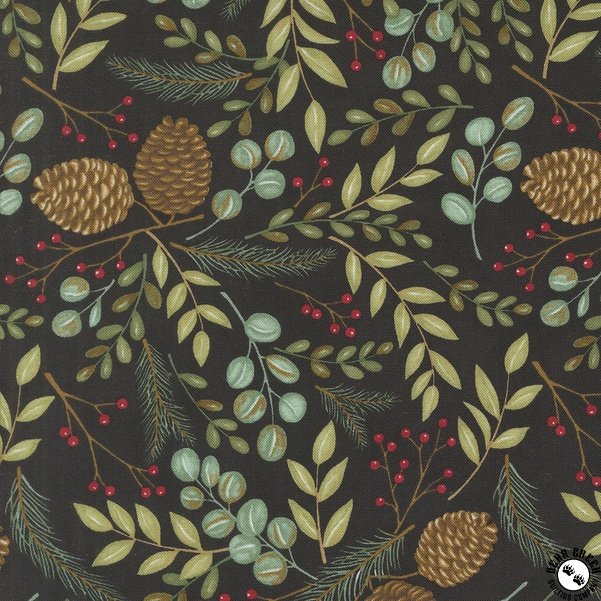 Moda Winter Friends Woodland Greenery Charcoal Black