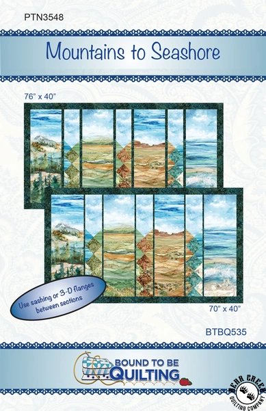 Mountains to Seashore Quilt Pattern View Larger Image Price: SALE $9.79 8 item(s) available. Item # PTN-3548/BTBQ535 | Reg. $13.99 Pin It Mountains to Seashore Quilt PatternFeaturing the The Great Outdoors fabric collection by Northcott. Pattern and instructions; fabric not included Finished size: 70 inches by 40 inches 76 inches by 40 inches Designed by Pat Syta and Mimi Hollenbaugh Published by Bound To Be Quilting Copyright 2025 Related Products Northcott The Great Outdoors Desert Ombre Rust/Multi Item # DP28448-37 | Reg. $12.99 SALE from $9.09 Northcott The Great Outdoors Desert Scene Rust/Multi Item # DP28449-37 | Reg. $12.99 SALE from $9.09 Northcott The Great Outdoors Meadow Ombre Green/Multi Item # DP28445-74 | Reg. $12.99 SALE from $9.09 Northcott The Great Outdoors Meadow Scene Green/Multi Item # DP28446-74 | Reg. $12.99 SALE from $9.09 Northcott The Great Outdoors Texture Green/Multi Item # DP28447-74 | Reg. $12.99 SALE from $9.09 Northcott The Great Outdoors Texture Rust/Multi Item # DP28450-37 | Reg. $12.99 SALE from $9.09