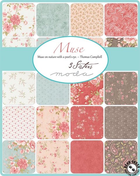 Let your creativity bloom with Muse  by 3 Sisters—a captivating fabric collection designed to spark your next sewing adventure.  With a graceful blend of delicate florals, whimsical botanicals, and airy ornamental patterns, Muse  offers a dreamy palette of soft blush, sky blue, weathered stone, and touches of sweet scarlet.  Perfect for quilts, home decor, and heartfelt handmade gifts, this collection brings a romantic charm to every stitch.  Let Muse  be the inspiration behind your next beautiful creation.