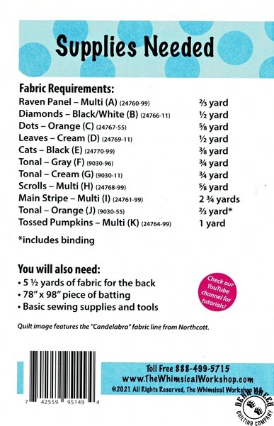 Night of the Ravens Quilt Pattern View Larger Image Price: SALE $3.00 4 item(s) available. Item # PTN-2955 | Reg. $11.99 Pin It Night of the Raven Quilt PatternFeaturing the Candelabra fabric collection by Northcott. Pattern and instructions; fabric not included Finished size is 70 inches by 90 inches Authored by Heidi Pridemore Published by The Whimsical Workshop Copyright 2022