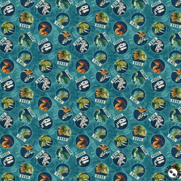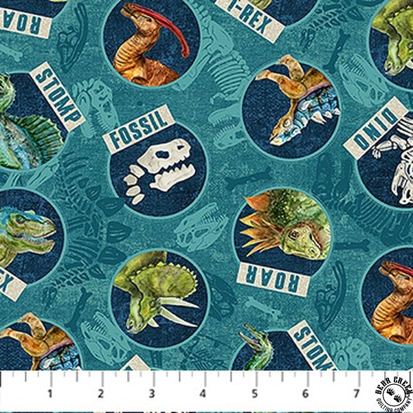 Northcott Dino Roar Dino Head Toss Teal/Multi