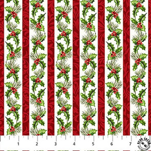 Northcott Holiday Joy Holly Stripe Cream/Multi