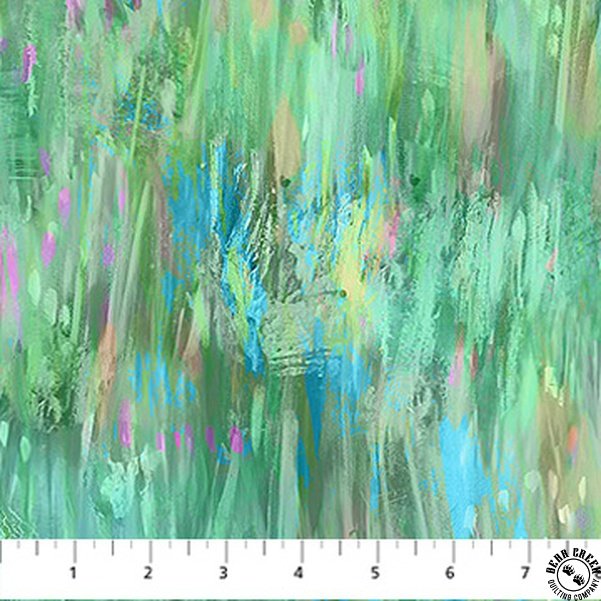 Northcott Lotus Large Brushstrokes Light Green/Multi