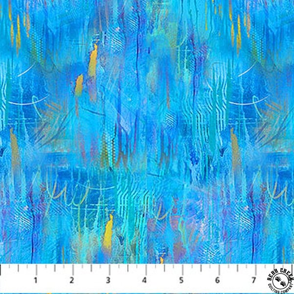 Northcott Lotus Small Brushstrokes Blue/Multi