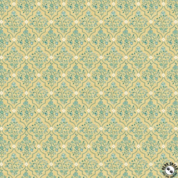 Soft and sophisticated, Mariposa  is defined by a refined palette of cream, saffron, sage, and teal.  Multi-directional florals, scallops, foulards, and mandala motifs add visual depth and versatility, while a full-width border print opens up a wide range of creative possibilities.
