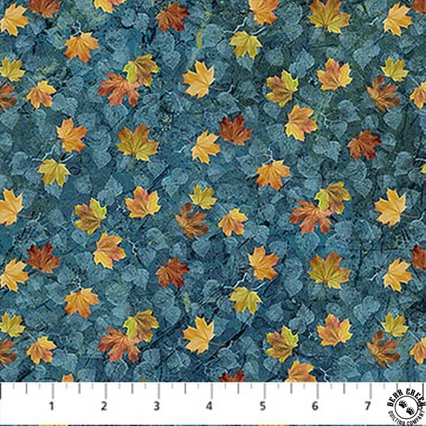 Northcott Naturescapes Autumn Woodland Leaf Toss Blue/Multi