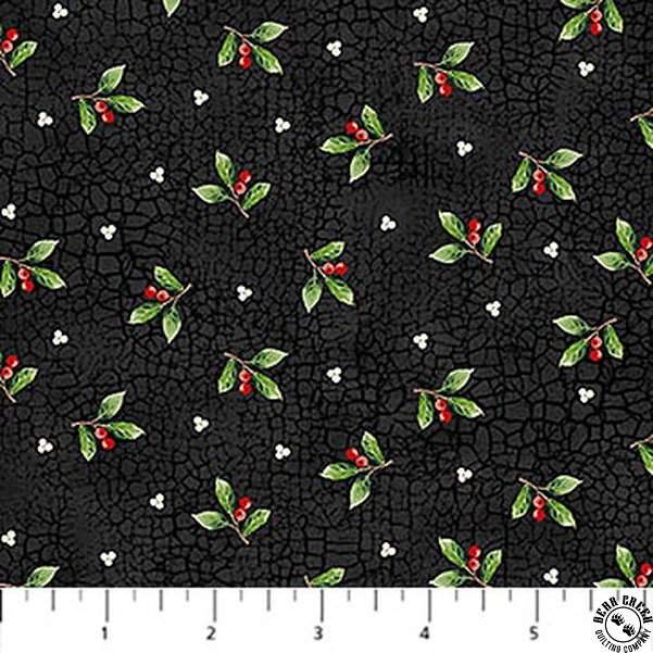 Northcott Winter Song Leaf Toss Black/Multi