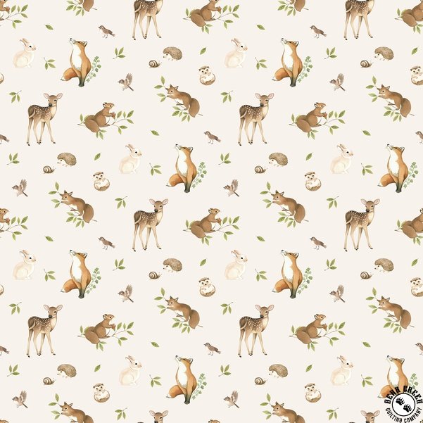 Created by Deborah Edwards and Kathryn Christenson, Woodland Hear is a sweet, gender-neutral fabric collection perfectly suited for today’s nurseries.  Charming animals, delicate flowers, and leafy foliage are beautifully illustrated with intricate detail, using soft, natural tones printed on cream, beige, and wedgwood backgrounds.  The fabric collection offers a thoughtful mix of coordinating prints in a variety of scales, making it easy to mix and match for quilts and sewn projects.