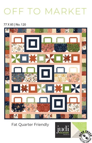 Off To Market Quilt Pattern View Larger Image Price: SALE $8.39 8 item(s) available. Item # PTN-120 | Reg. $11.99 Pin It Off To Market Quilt PatternFeaturing the Curated Blooms fabric collection by Riley Blake Designs. Pattern and instructions; fabric not included Finished quilt measures 77 inches by 85 inches Designed by Judi Madsen Produced by Judi Madsen Designs Copyright 2024 Related Products Riley Blake Designs Curated Blooms Leaves Light Olive Item # C15343-LTOLIVE | Reg. $11.99 SALE from $8.39
