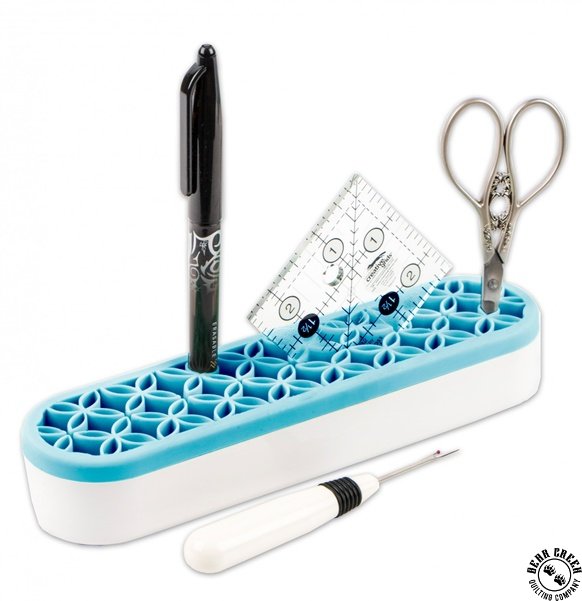 Time to add some style to your storage!  This tool is great for storing your sewing gadgets and so much more.  Made from high quality silicone material, it is able to flex-fit a wide array of items of various sizes.  The Stash 'n Store is compact and durable, letting you take it wherever you go.  Easily store marking tools, scissors, stilettos, rulers, even brushes and small rotary cutters, in an easy-to-grab upright position.
