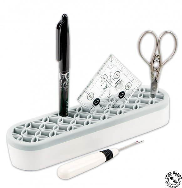Time to add some style to your storage! This tool is great for storing your sewing gadgets and so much more. Made from high quality silicone material, it is able to flex-fit a wide array of items of various sizes. The Stash 'n Store is compact and durable, letting you take it wherever you go. Easily store marking tools, scissors, stilettos, rulers, even brushes and small rotary cutters, in an easy-to-grab upright position.