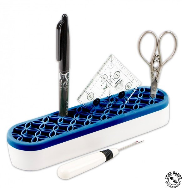 Time to add some style to your storage!  This tool is great for storing your sewing gadgets and so much more.  Made from high quality silicone material, it is able to flex-fit a wide array of items of various sizes.  The Stash 'n Store is compact and durable, letting you take it wherever you go.  Easily store marking tools, scissors, stilettos, rulers, even brushes and small rotary cutters, in an easy-to-grab upright position.