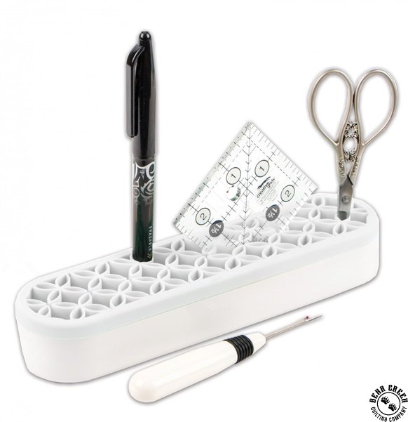 Time to add some style to your storage! This tool is great for storing your sewing gadgets and so much more. Made from high quality silicone material, it is able to flex-fit a wide array of items of various sizes. The Stash 'n Store is compact and durable, letting you take it wherever you go. Easily store marking tools, scissors, stilettos, rulers, even brushes and small rotary cutters, in an easy-to-grab upright position.