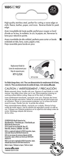 Circular rotary replacement pinking blade designed to place "teeth" on the edge of fabric to reduce raveling and to add a unique edge to any project. Very popular with crafts and memory book development. Also great for use with Polar Fleece! This blade is made of stainless steel for sharpness and durability.