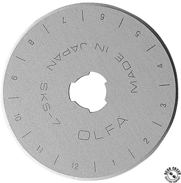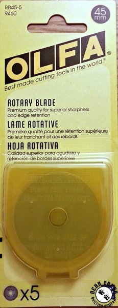 Olfa blade refill for 45mm rotary cutters. Circular rotary replacement blade for the most popular 45mm rotary cutters used for quilting, sewing, and general crafts. Cuts up to 6 layers of fabric. This blade is made of high quality tungsten steel for unparalleled sharpness and superior edge retention.