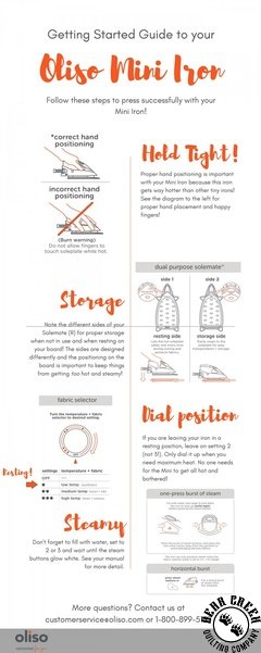 I'm the Oliso Mini Iron, designed for sewing, quilting, and crafting. I have the power of a full sized iron in a compact and lightweight design, allowing me to fit next to your sewing machine or in your travel bag with ease. Includes a silicone iron rest, so you can keep the iron in the down position. Mini Iron does not have the "itouch lift" feature.