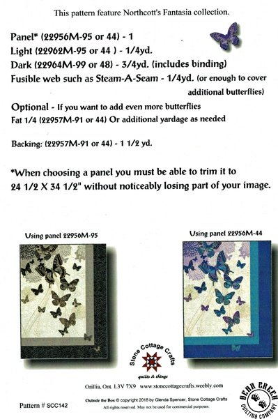 Outside The Box Quilt Pattern View Larger Image Price: SALE $8.39 3 item(s) available. Item # PTN-2506 | Reg. $11.99 Pin It Outside The Box Quilt PatternFeaturing the Shimmer Fantasia fabric collection by Northcott. Pattern and instructions; fabric not included Finished quilt measures 32 inches by 42 inches Designed and published by Stone Cottage Crafts Copyright 2019