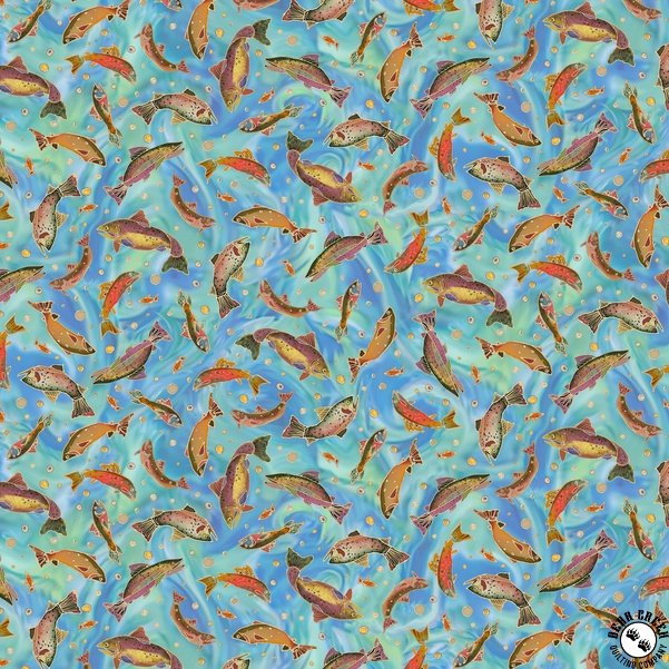 P&B Textiles Bear in Mind Tossed Fish Blue/Green