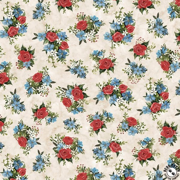 P&B Textiles Farmhouse Americana Tossed Flower Bunches Cream