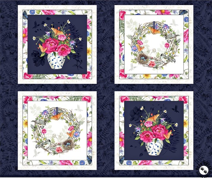 The Indigo Song fabric collection IS spring! Sandy's newest collection is beautifully impactful and the color palette is stunning. The large panel blocks will be ideal to use as napkins, table mats, or pillows and of course, they are ideal to use in quilts.