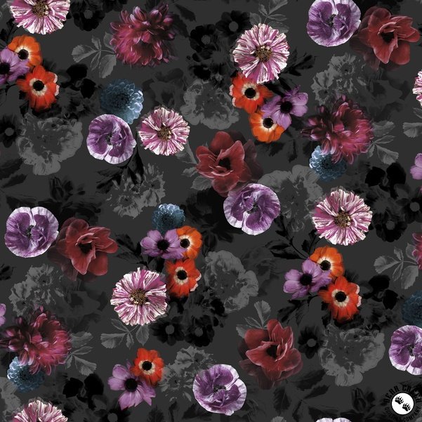 Embrace the captivating beauty of the Moon Flower  fabric collection by P&B Textiles! This moody and elegant collection features rich black and gray backgrounds, beautifully contrasted by florals that seem effortlessly tossed across the fabric. The result? A dramatic yet timeless look that adds depth and sophistication to any project. Whether you're designing a striking quilt, chic apparel, or stylish home decor, these stunning prints will bring a touch of mystery and romance to your creations.