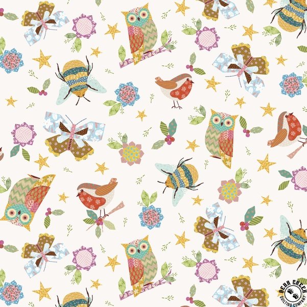 Things With Wings  is a delightful fabric collection by Jo Reid that offers something special for every stitcher and quilt enthusiast.  Centered around sweet creatures, the designs are accented with touches of embroidery, patchwork, and applique, creating a look that’s both unique and utterly charming.  The panel showcases four large blocks that can be used together as a complete quilt or cut apart for individual projects.  One standout print features a patchwork of “mini blocks,” perfect for quilt centers, larger block accents, borders, or even backing.  The color palette is fresh and inviting, while the versatile prints lend themselves beautifully to quilts, apparel, and home decor projects alike.