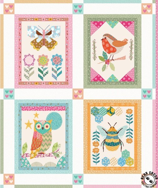 Things With Wings is a delightful fabric collection by Jo Reid that offers something special for every stitcher and quilt enthusiast. Centered around sweet creatures, the designs are accented with touches of embroidery, patchwork, and applique, creating a look that’s both unique and utterly charming. The panel showcases four large blocks that can be used together as a complete quilt or cut apart for individual projects. One standout print features a patchwork of “mini blocks,” perfect for quilt centers, larger block accents, borders, or even backing. The color palette is fresh and inviting, while the versatile prints lend themselves beautifully to quilts, apparel, and home decor projects alike.