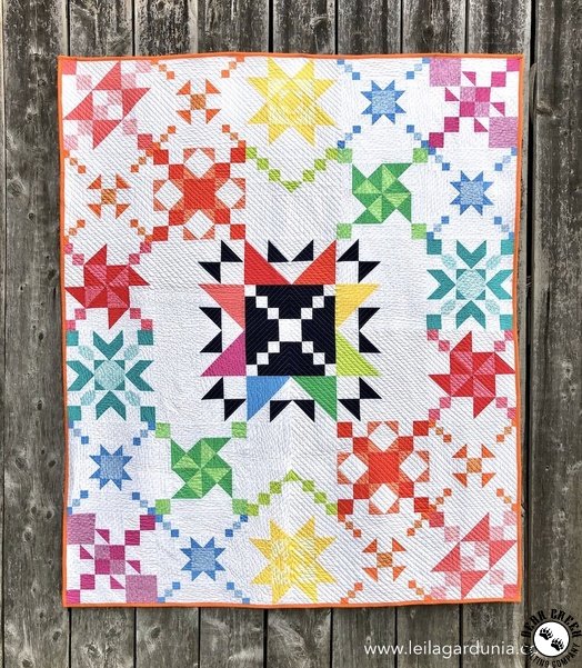 Patch Party quilt pattern, traditional quilt blocks are given a modern update through the use of solids and tone-on-tone prints.